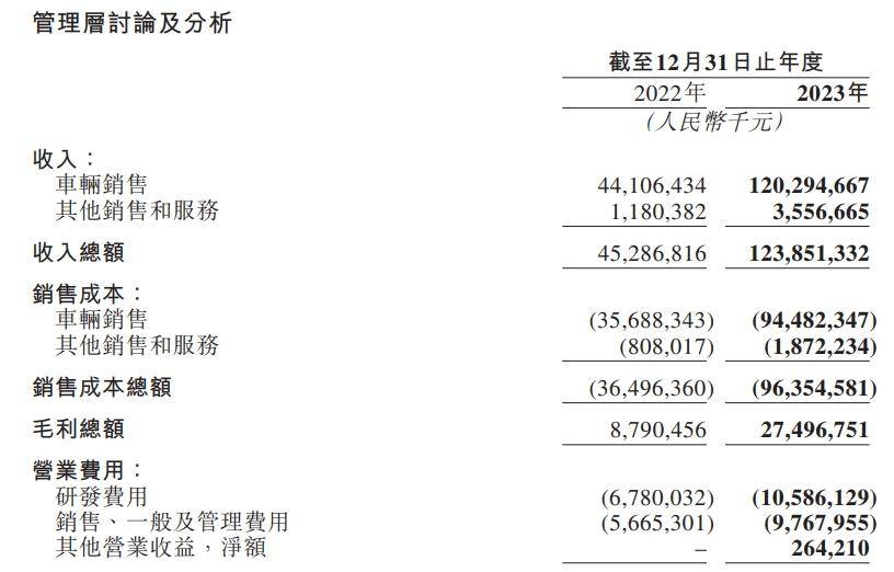 作为参考,2023年,理想的全年交付量同比上涨282.3%,营收同比上涨273.6%,但市场营销费用只比2022年提升了172.4%,展现出了较为出色的营销效费比。
