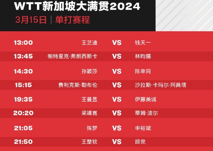 3月15號央視預(yù)告,新加坡大滿貫賽王楚欽孫穎莎3加2考試滿分