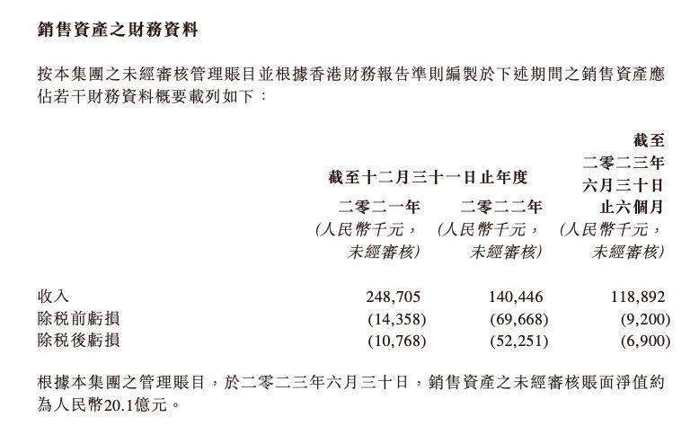 据公告数据显示,2021年、2022年及2023年上半年,拟出售的苏河湾项目酒店系列资产实现收入分别为2.49亿元、1.40亿元、1.19亿元,除税后亏损1076.8万元、5225.1万元、690万元。
