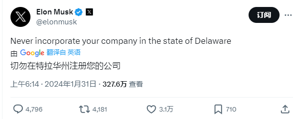 1月31日,搜狐特斯拉股東2022年狀告馬斯克通過不當(dāng)手段獲得了價值550億美元(約合3949億元人民幣)的汽車全球CEO薪酬方案被美國特拉華州法官凱瑟琳·麥考密克駁回,這一裁決使馬斯克的快訊克首九州體育ju111財富大幅縮水。對此,馬斯美元馬斯克在X發(fā)帖稱:切勿在特拉華州注冊公司。富頭方案